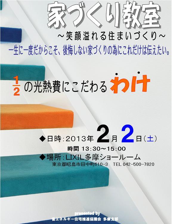 2/2(土)家づくり教室inリクシル多摩ショールーム