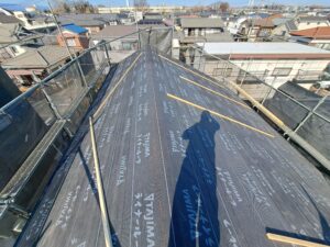 ですので、風で下葺きが飛ばないように、野縁を打ち付けています