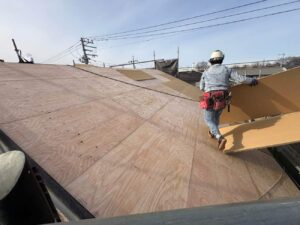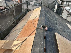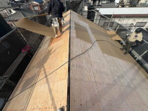 今回は、合板の上に、雨音や熱の伝わりを軽減する屋根下地材「ビルボード」も採用