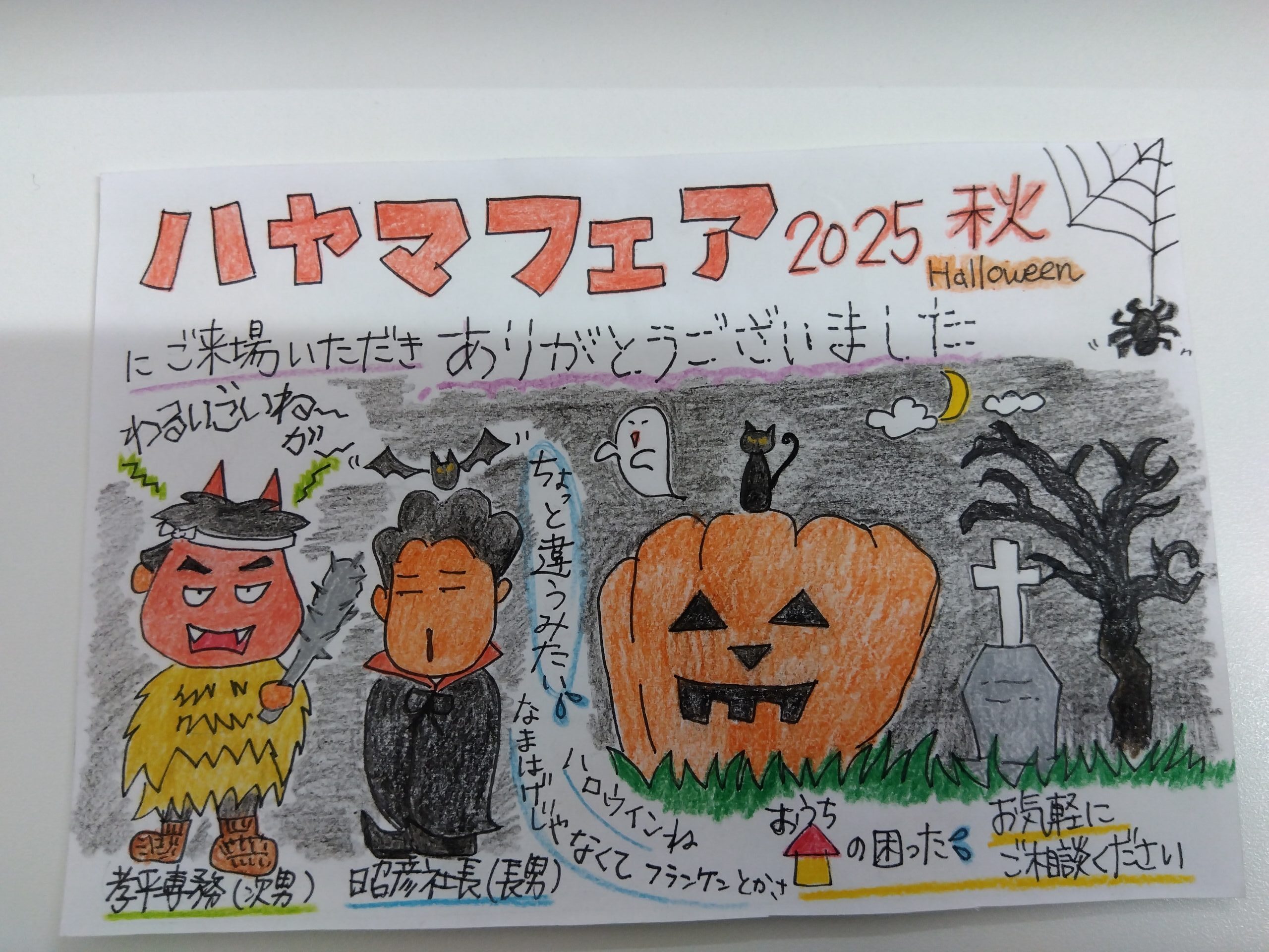 画伯のハロウィンイラストとともに、季節の雰囲気をお楽しみください👻🍬
