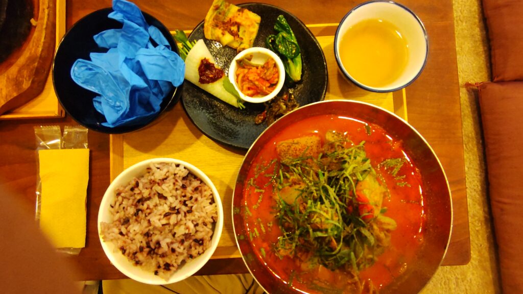 ゴム手袋をはめて、本格的韓国料理✨