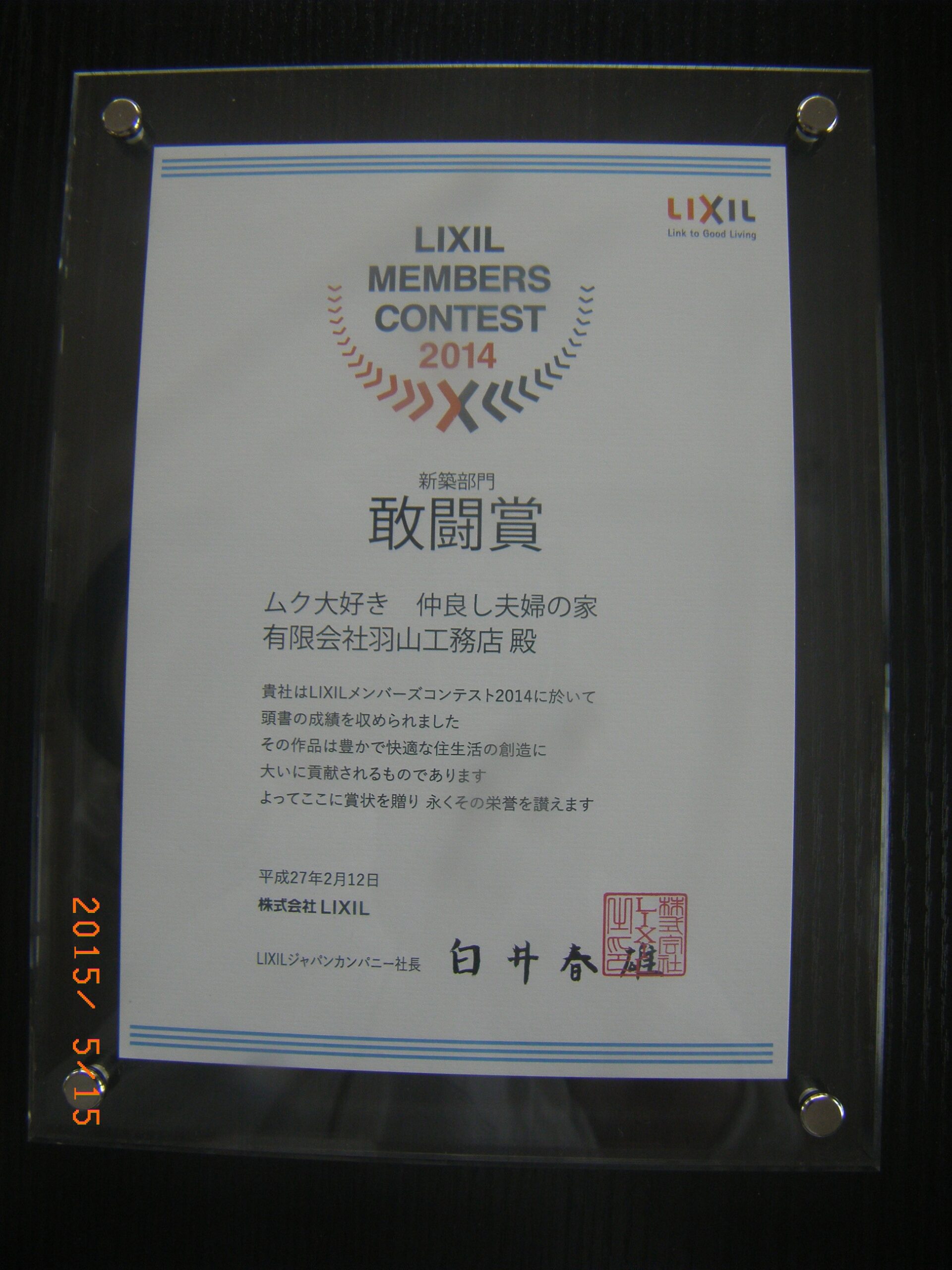 “LIXILメンバーズコンテスト2014” に於いて敢闘賞を受賞しました